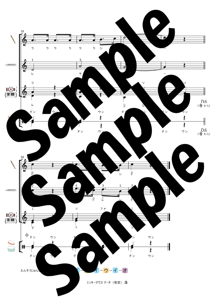 こちらは、教育芸術社3年の器楽曲のドレミ付き楽譜一覧ページです。